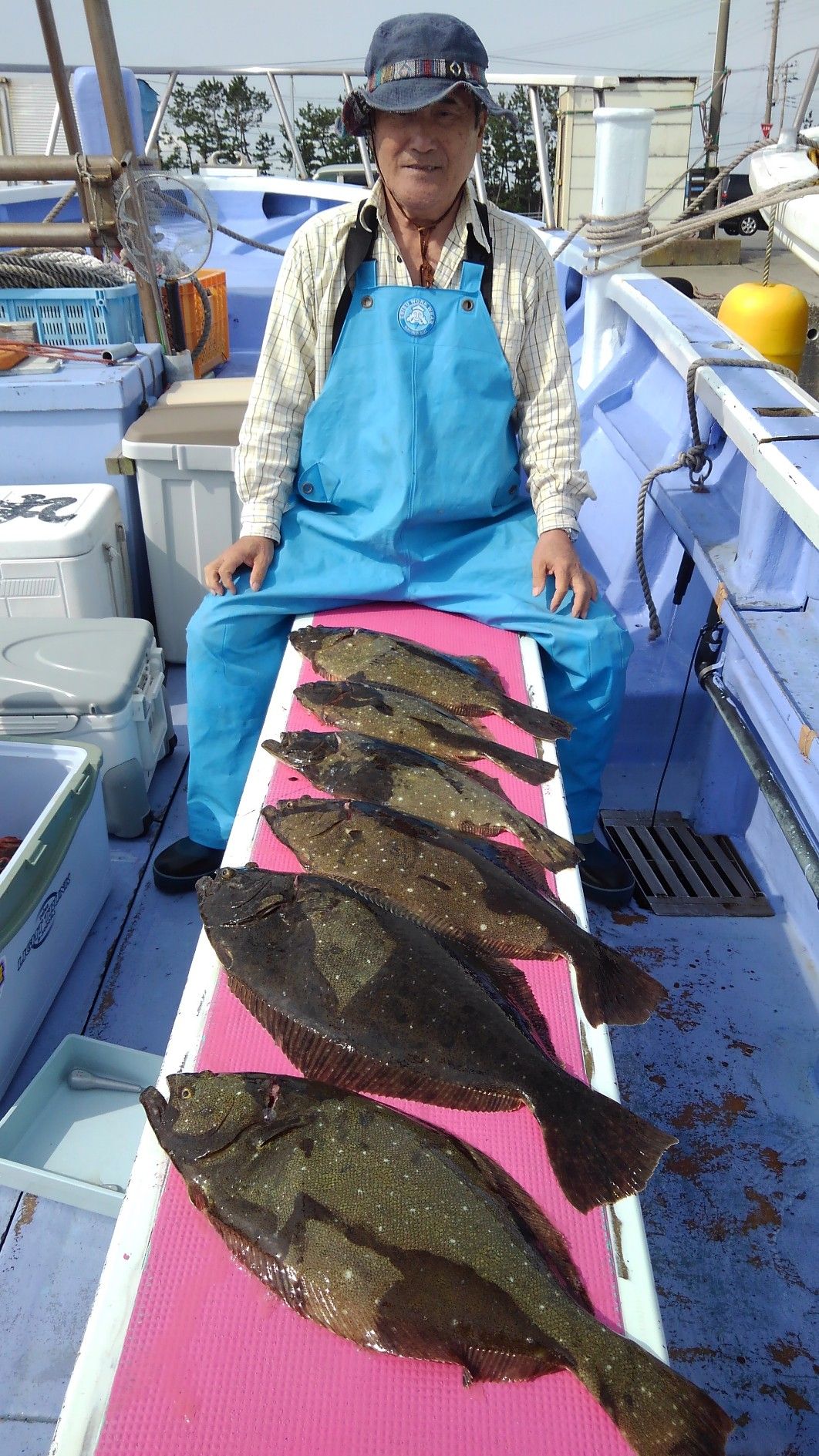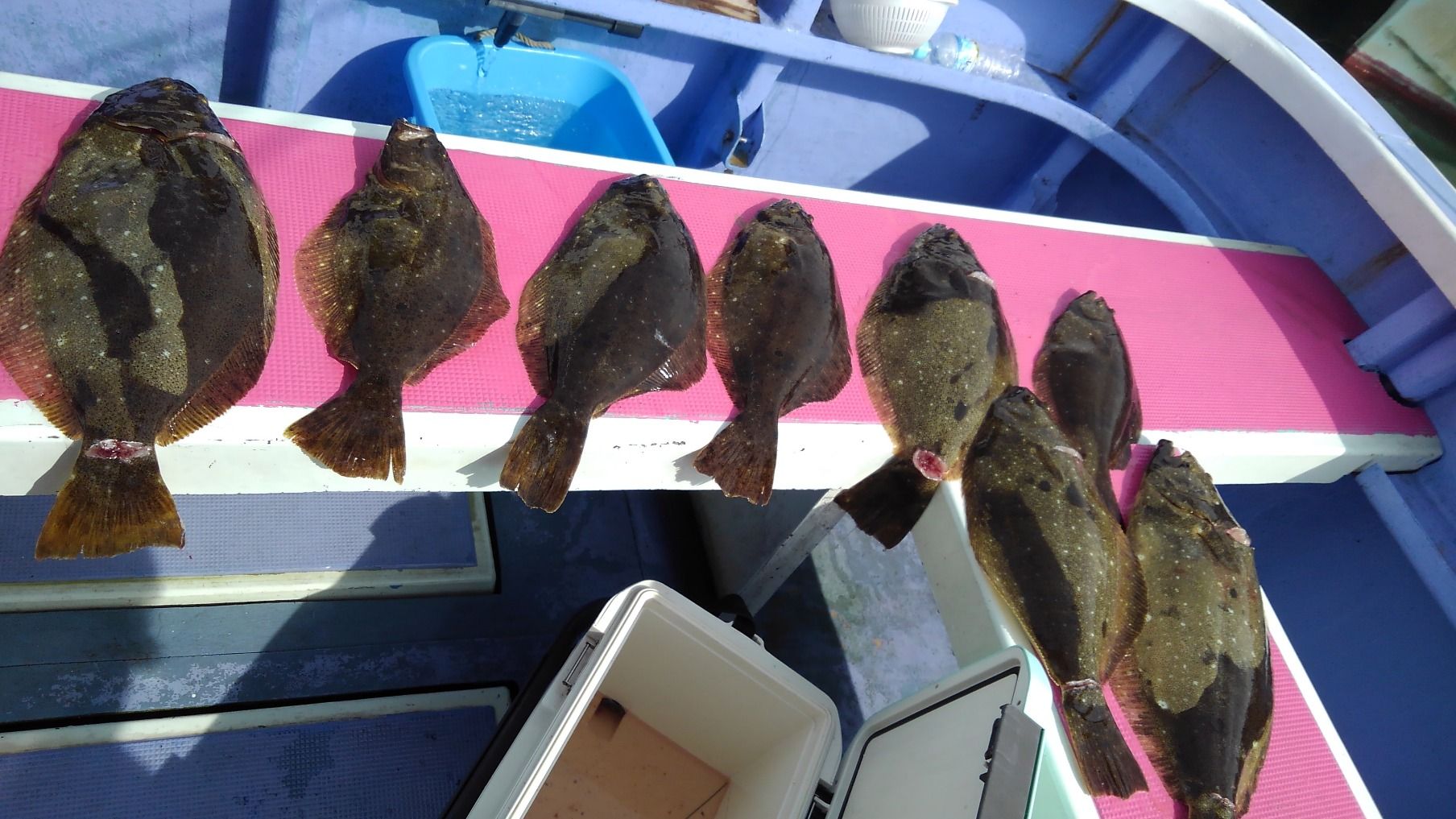 ヒラメ 0.6kg~2.5kg(ヒラメサイズ主体)を3枚~8枚×2名