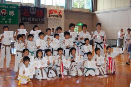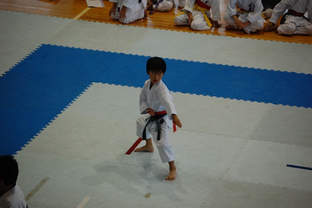 7月18日に玉野スポーツセンターで空手の大会がありました。ター君は低学年形競技に参加しました。この大会はター君が所属する道場の大会でさほど大きい試合ではありませんが昨年のインフルエンザ以降、全く試合に参加せずだったので久しぶりに出ることになりました。で、で、で。。。結果は・・・・・ 準優勝!!!!! 順調良く勝ち進み、いつの間にか決勝。パパもママもイーちゃんもター君そっちのけで大喜びしちゃいましたの だ・か・ら写真にター君ちゃんとうつってま~す。 初めての入賞にター君も自信がついたかな 今度は大きな大会でベスト8ぐらいには入ってほし~な