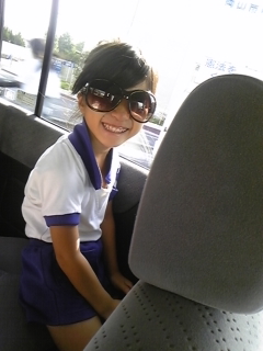 今朝、保育園に行く車の中で「ママのメガネかして~」とあまぁ~い声。「はい、ど~ぞ~」と渡したらすっごく大人しくなっちゃった悪さでもしてんのか??振り返ったらセレブ気取りのイーちゃん発見。グラサンかけて窓の外を眺めておりました(汗)将来はどんなおねぇになるんだろうね~ママは楽しみです☆