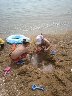 今日は朝から牛窓へ。はい。毎年恒例、海水浴ただ、休みの少ないパパ&ママは一日中はしんどいので2時間だけと、時間を決めて。。。海に入って遊ぶより浜辺で砂遊びのほうが時間が長いお母ちゃんは楽でいいけどね出たり入ったり繰り返し最後には「ママ~寒い帰ろうゃ~~」とお願いされたのはちょうど2時間経った頃。「まだ、遊びたい!!」って言われるのを覚悟してたのに案外すんなり帰れたことに夫婦2人まぁ、楽しかったみたいなのでそれはそれで良かったって事にしときます