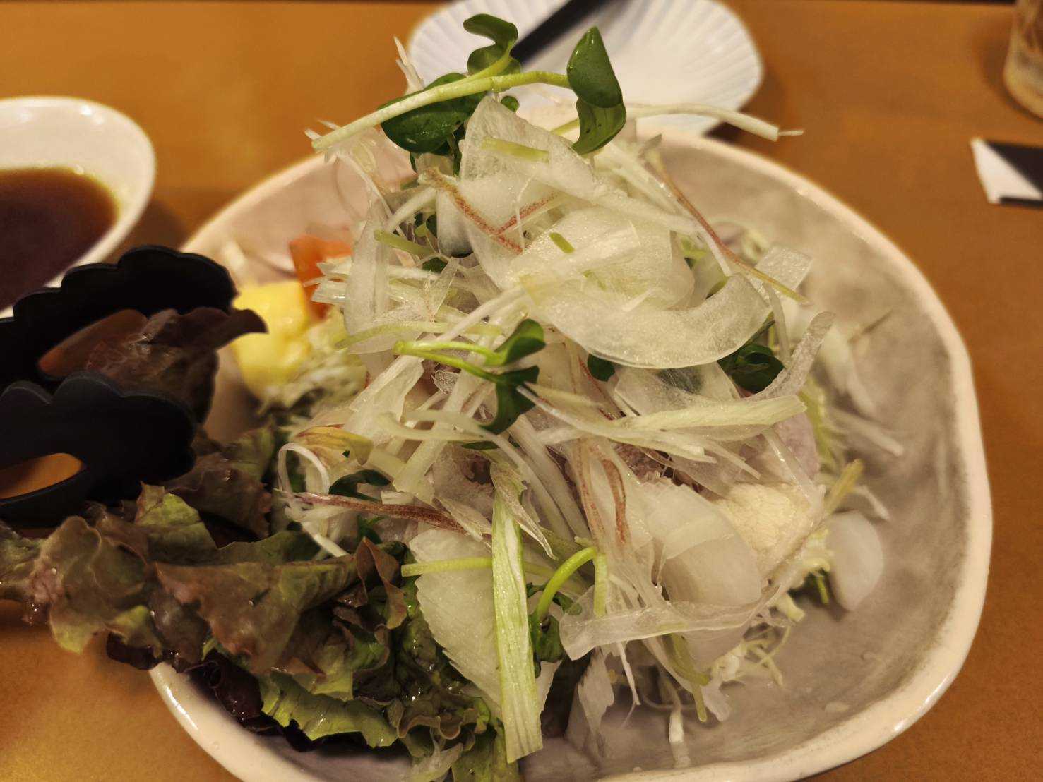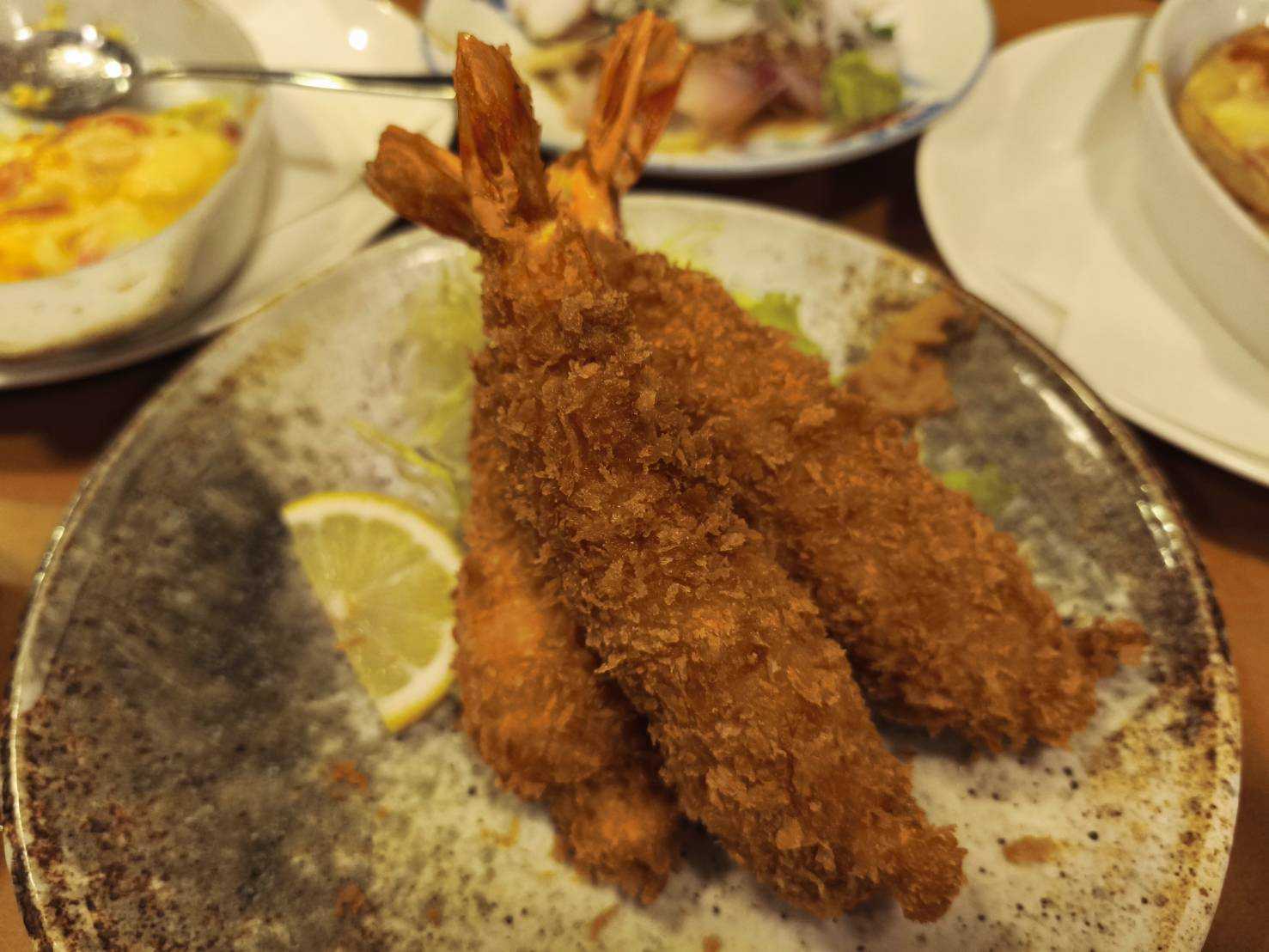 お通しアスパラ豚しゃぶサラダとうもろこしかき揚げグラタン梅たたきポテチーズぶりエビフライとびっこチャーハン