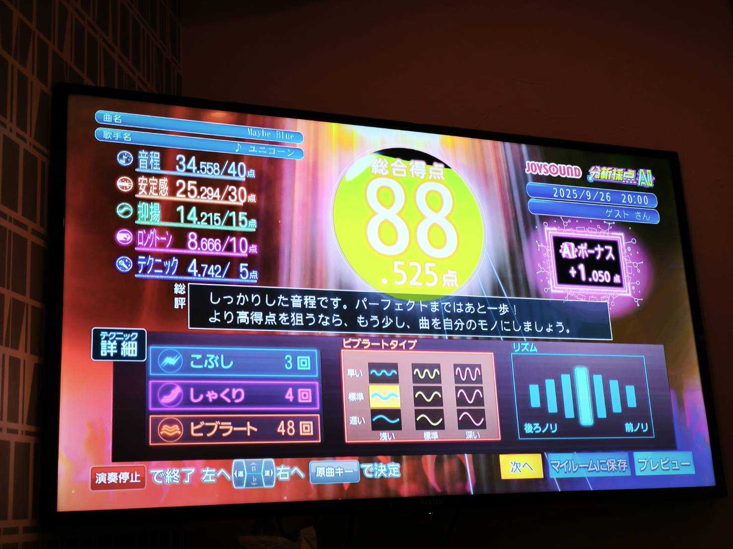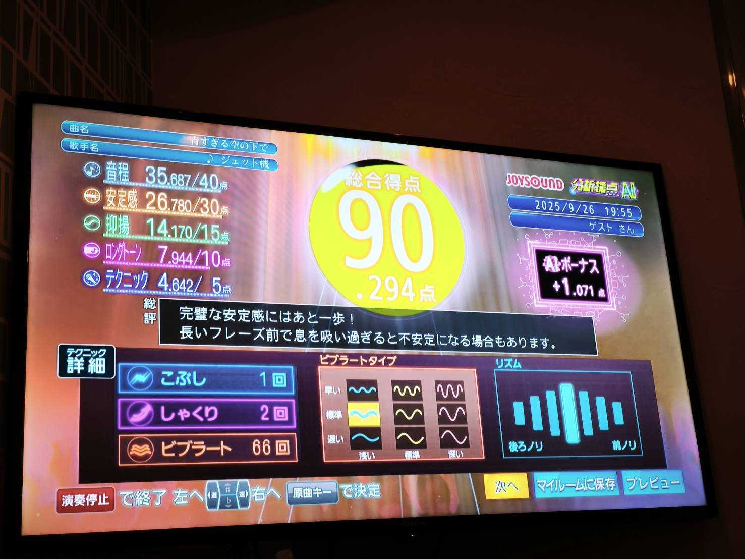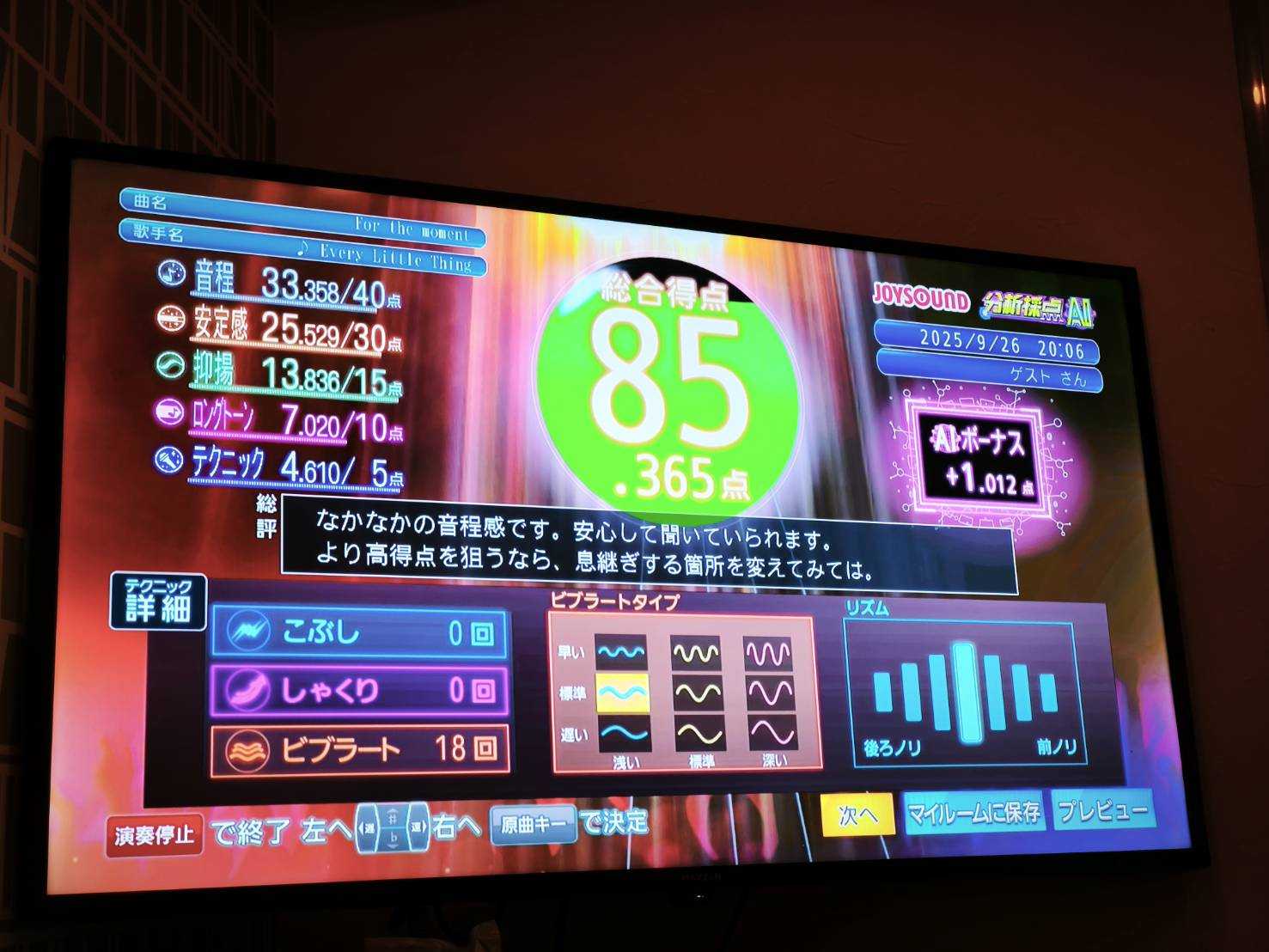 一人カラオケではゲーム感覚で採点します。JOYSOUNDだとDAMより得点が高めになりやすいです。