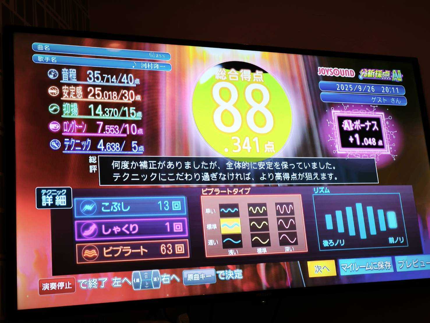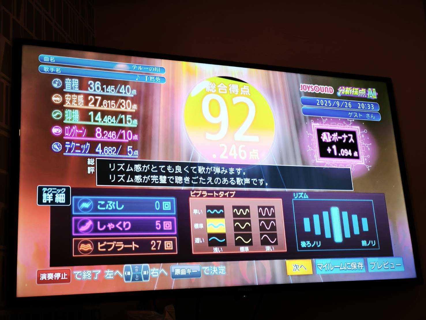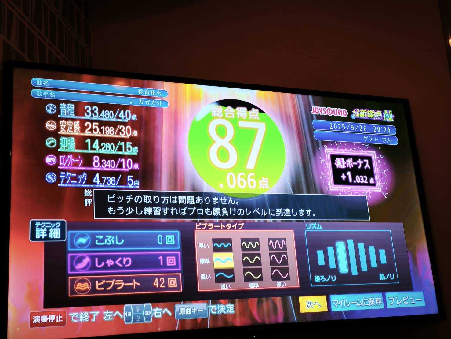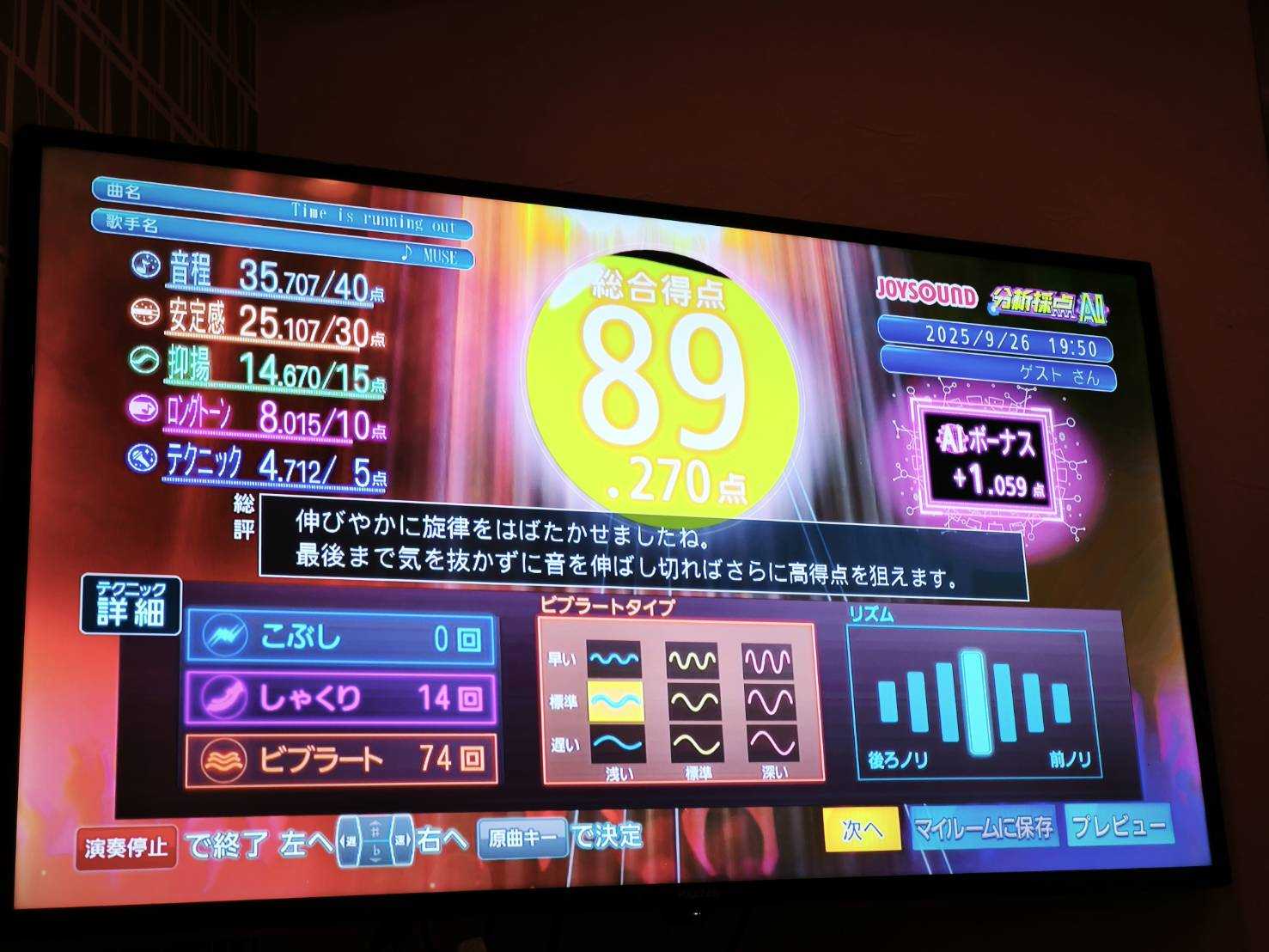 一人カラオケではゲーム感覚で採点します。JOYSOUNDだとDAMより得点が高めになりやすいです。