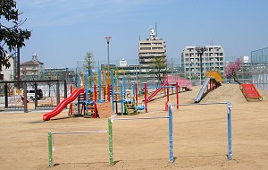 市民の希望や要求とずれた市の施策は、前回の引用記事にある防府市の「遊び広場」だけでなく、次の記事もその例と見ていい。【「子育て四国一」を目指して、四国中央市はさまざまな施策を打ち出している。先駆的な取り組みもあるが、身近で大切なことで、後回しになっているものがあるのではないかと感じる▲それは、市内の保育園・幼稚園の遊具を巡る問題だ。市は今年3月初め、遊具の安全性を点検し、危険と判断された遊具を使用禁止とし、それらの遊具は2カ月たった今も子どもたちが遊べない状態。市こども課によると、修理・撤去にかかる費用が予想を上回り、修理開始時期は未定だという▲】(【】内は記事から一部引用、Google ニュース/毎日新聞:2009年5月20日) 「子育て四国一」のキャッチコピーの泣き声が聞こえてきそうな記事の内容だ。しかし、こうした遊具が撤去や使用禁止のまま、長期間放置されている公園は少なくない。その一方で、これでもか!これでもか!!と豪華な遊具がひしめく公園も少なくない。もちろん、この両極端が、同じ自治体内にあるところは無いとは思うが、何とかならないものだろうか。 「活用の実態がない」「遊び広場」も、使用禁止遊具が放置された公園も、豪華遊具過多の公園も、共通して言える事は、そこであそぶ主人公の思いや願いに応えていない、自治体当局の愚策の結果と言う事だ。その一つの典型が、まもなくオープンする我が地元の公園に見られる。一つの公園内に、滑り台が大小合わせて数基もある(下図参照)。これが、大阪市の紛れも無いひとつの実態だ。「こどものあそび(遊び方)」は、次のページでいろいろ紹介しています。あそびセレクト↓の評価ボタンを押してランキングをチェック!