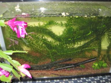 エビ水槽。メダカと子フナも入ってますメダカはちいさいの5匹。ヌマエビ10匹程度。仔ブナ2匹(ほとんど冬眠中)