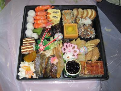 謹賀新年おせちで祝。 雪の正月。近くの神社とお寺へお参りことしもよい年でありますように。KAZ