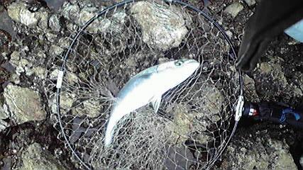 朝から9時30-昼2時まで、Kクンと近くの磯へ波も風もなくこの時期としては珍しく穏やかな海です水温はいまが一番低い・・・魚の活性は非常に低いです。グレは気配まったく無し、チヌもまだ早い。メバルが釣れたらと思ってましたが、まったくウキに反応が無しでした。そんな中、はまちがHITしました。 猪目・青のり