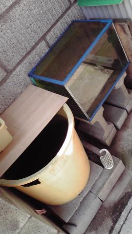 屋外の飼育用水槽です左の桶は、スジエビとメダカ。右側の45センチ水槽は、メダカとフナ(2匹)と先日獲ってきたタナゴ10匹くらい 以前は屋内で5,6本水槽置いて熱帯魚、海水魚などを飼育していましたが水かえなど管理が大変なので、最近は自家採集のみ身近な魚たちをかってます 家の中に、ヌマエビの水槽とアフリカンシクリッド(カエルレウス)の水槽があります ヌマエビの水槽は地味だけど観ていて飽きません