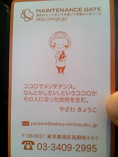 これはきょうこちゃんの名刺ですこれはゆみちゃんの名刺です二つともイメージすること伝えたいことがとーっても上手に表現されているなぁ~と思いますジユウダ~かわいいキャラクターがあると集めたくなる・・・という気持ちがよく分かります↓お店のHPです☆