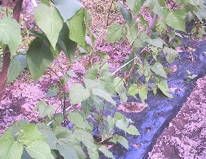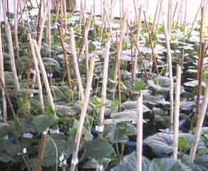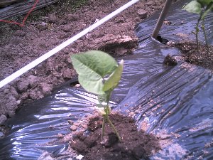 ハウスで育てておいたいんげん植えましたこの辺ではササギ又はササゲとも言います定植後あまり天候がよく少し日焼けしましたが今日は一転雨です。