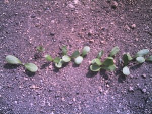 数日前播いたゴボウの芽が出ました写真では何の野菜かたぶん分からないと思います同じ所に長いもの種芋を植えましたがゴボウと同じくらいに芽が出ました写真に取りましたがピンボケになったので写真は載せませんゴボウです