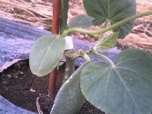 数日まえ定植した夕顔の苗が順調です自分はあまり夕顔は好きじゃないですが両親が好きなので毎年植えてます