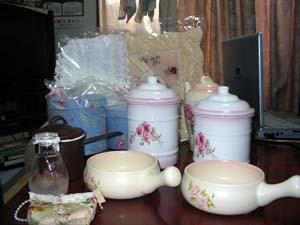 *……………………………………………………………………………………*イマンとロマンチック雑貨の福袋のネタバレです。全部でこれだけ入ってました。ダイアナローズ ミルクパン(耐熱土)が二つ。イマン プロヴァンスローズ ホーロー ビードキャニスターLL イマン プロヴァンスローズ ホーロー ビードキャニスターL イマン かほり しょうゆさしソースパンブランドパリシェルプールローズの陶器ポットいす用のシートマリーの部屋ティッシュカバーちびバック入れ子式ボックスそしておまけにサシェロマンチック雑貨イマンロマンチック雑貨の中に入っていたかわいいけど何に使おう値段的にはお得だと思います。ただ自分としてはお皿とかカップとかが入ってなかったのがちょっと不満。あとロマンチック雑貨に天使のかわいいのが入ってれば良かったな。そして、あの~まぁ自分用なのでいいんですけどみんな値札がついたままで届きました・・・☆.。.:*・゚☆.。.:*・゚☆☆.。.:*・゚☆.。.:*・゚☆☆.。.:*・゚☆.。.:*・゚☆参加しています♪人気ブログランキング/楽天ブログランキング*……………………………………………………………………………………*Template-すず♪♪