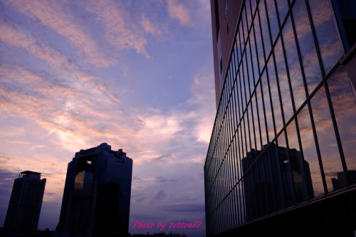 太陽が北回帰線に達し、太陽が出ている時間が一番長い夏至でしたね。北極圏では白夜のピークですよね今日は、いつも夕暮れを撮る方向には雲が流れ込んできていたので大阪ステーションシティに映り込んだスカイビルを入れて撮ってみました。