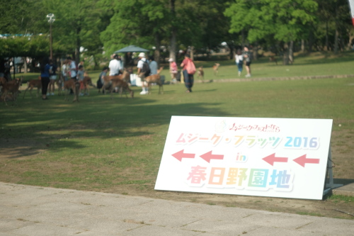 奈良公園の広い芝生の春日野園地ではムジーク・フラッツ2016が開催されていました。徐々に太陽も西へ傾きつつありますが夏至直前ということもあってなかなか木陰も伸びてきません。先週末は沖縄の音楽がメインだったので沖縄の屋台が並んでました。久しぶりに沖縄バヤリースのシークワサージュースを飲みました。暑い時にさっぱりとしたものはいいですよね
