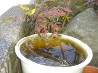 昨日うっすらと積もった雪も溶け青空が広がりお天気めちゃめちゃいいです(*´▽`*)もう春なんですねぇ~♪天気が良くてポカポカ暖かいと言ってもやっぱりまだまだ寒い(>_<)そんな今朝のお庭写真です。 桶に氷がはっているじゃないですか ⇒ 取り出してみました!!今日は天気がいいので朝からお掃除☆お掃除忙しい洗濯機まわしてお布団干してシーツと毛布をコインランドリーへお部屋を掃除機かけぞうきんがけしてタイチの鳥かごを久しぶりに水洗いしてついでにクッチもブラッシング☆お散歩も行ってご満悦(´∀`) 昨日3月3日のひな祭り☆みなさんのブログ拝見してたらひな祭りにちなんだお料理作ってました!!我家の夕飯はいつも通り。旦那は帰ってきて『今日はちらし寿司やと思ってた!』って一言。お義母さんが『じゃあ~明日作ってもらえば』って。えっ!?私ですか(゜д゜)我家のご飯担当はお義母さん。うちはメイのご飯と片付け担当って感じになってます!今日はお義母さん町内のボーリング大会でいないので夕飯はうちが作る事に。と言う事で今日は買い物から行かなくてはならないです。頑張って美味しいちらし寿司作ります!!すし太○とかじゃダメですよね・・・。ちらしだけじゃダメよね(笑)あとハマグリ?のお吸い物とか・・・あとなんだ??えっ☆メイはおんぶしながらか??出来るのか?私??どうするよぉ~わたしぃ~♪つづ~く。気合入れて買い物行ってきます(・▽・)!!
