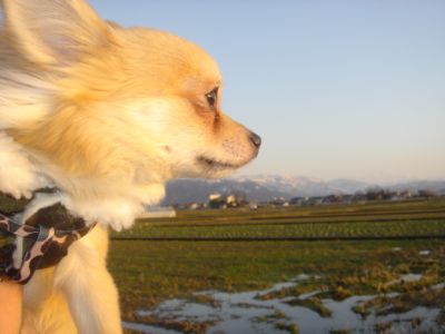 シャネル大好き7256さんの弟さんのチワワの”わんわんちゃん”がいなくなっちゃったそうです!!もしよければこのブログ見た方HPで広めていただけたらと思います。どなたか心当たりのある方ご連絡さしあげてください(>_<)どんなに心配されているか・・・自分の事のように心配です(´`;)早く見つかりますように☆☆☆ 本日のクッチは町内の公民館まで歩いて15分程の距離を先住犬のジーズーのチン君と一緒に行ってきました!!お天気が良かったのでメイもウバグルマに乗せて、お義母さんと半日でお仕事が終わり帰ってきた義妹も一緒ににぎわいながらのお散歩です(^▽^)ノ目的は・・・狂犬病の注射大の注射嫌いのクッチ。獣医さんや市の方もいて人嫌いのクッチは暴れるだろうと思い病院へ行って打とうかなぁ?って思ってたんだけどチン君も行くって言うから(チン君はしゃべらないけど)一緒に行ってきました。何も知らないクッチはルンル~ン♪気分でお散歩してました。案の定☆暴れるクッチ!!顔もっとこっちに向けないでって言われる始末・・・。痛かったねぇ~。ビックリしたねぇ~。めっちゃガウガウになってましたけど、なんとか抱え込みOKでした。片道15分の道のり。老犬のチン君ペースで歩いてたら1時間もお散歩してました。距離的には1時間ないんだけどねぇ~。今日はお天気が良くて風が強かったけどポカポカ時々暑いって感じでした。今日の金沢は23℃もあるらしいです。