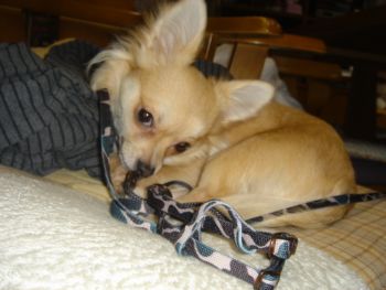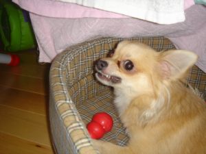 最近クッチに噛まれまくりの飼い主です(≧m≦)傷がしみて洗い物が辛いです☆クッチ・・・食べてるとき本当に危険(>_<)昨日は一日中クッチとケンカしてました!!(大人げないです)だってクッチったらオシッコさせに家の前連れて行ったら早々に車庫に入り近所の方がくれたフードの袋が近所の猫さんに破られてこぼれてたの食べてたの☆コラコラッっていつもの様に片手でヒョイって持ち上げようとしたら・・・ガブッガブッガブッってうちの方が強い!!って心で念じ今度は気合を入れてクッチ怒鳴り・・・噛まれると嫌なのでトレーナーで手を保護しか~しガブガブッでしたなので昨日はクッチ一人でお部屋で反省してもらいました!寄ってこようが背を向けてました(笑)しかし夕方シャンプー予約してたので険悪なムードで連れて行きました!シャンプー帰ってきて甘えん坊クッチに戻りました いつもこんな感じだとカワイイのに(>_<)この噛み癖改善しないとなりません!!夕方お散歩行ってきました近所のおばあちゃんに『かわいい~小さい犬や☆どこの子や??』っておばあちゃん・・・。会うたび聞くのはどうしてでしょう?? ボクの事覚えて下さいね