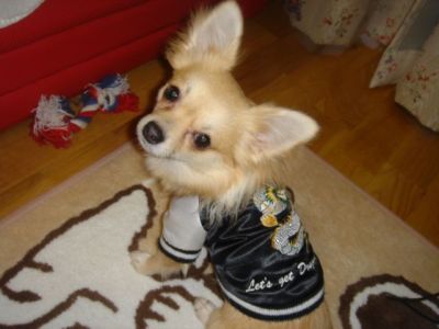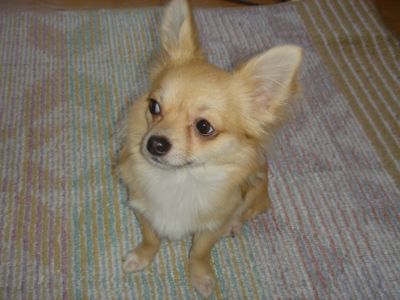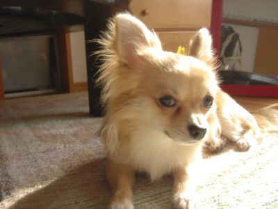 今日はめちゃめちゃお天気の良い春日和な金沢です兼六園の桜ももうスグ咲みたいうちはクッチがおうちに来るずっと前から犀川(桜並木の川沿いがあるの)を愛犬とお散歩するのに憧れてたのらぁ~♪去年はクッチがまだ小さくてお散歩デビューもしてなかったから行けなかったけど今年はぜひともメイも一緒にお散歩がてらお花見に行きたいね兼六園はさすがにダメかしら?? 今日は義妹がお仕事お休みで天気がよかったのでメイをウバグルマに乗せてクッチとチン君も一緒にお散歩へ行ってきました今日はすごく暖かくてお散歩も気持ち良かったぁ~そして近所のおうちに最近チワワ君が来たのらぁ~♪いつも出窓の所に上って吠えてます色はレッドでしょうかクッチは血統書にレッドと記載されていたのでずっとレッドなんだ!!と思い込んでいましたが・・・ご近所のチワ君こそレッドだ!と思いました!!はてっ??クッチはレッドでないのかなレッドにも色々あるんでしょうか??でもクッチが来た時は黒色だったのにその時点でどうしてレッドって分かるのかな??チワワの色って小さい頃と変わっちゃいますよね??レッドとフォーンぐらいなのかな??ってフォーンの色がイマイチ分かってないオレンジ満月なのですが・・・。 ←こんなクッチでした。今日は抱っこしてクッチにチワ君を見せましたが・・・クッチは興味なさそうでした仲良くして欲しいな。って言ってもたまにしか顔見ない挨拶程度のおばあちゃん家なので親しく遊んだりできないですねぇ~あぁぁ~クッチにもお友達欲しいな☆チン君はおじいちゃんシーズなのでクッチはいつも遊んでモードでからむのですが・・・全く相手にされてません今日も遊んで☆遊んでぇ~♪モードなクッチなのでした
