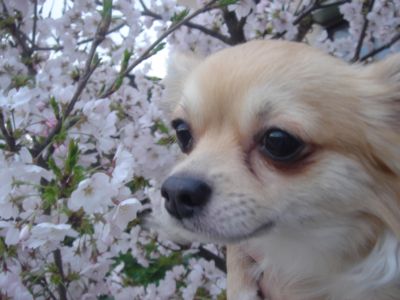 こんにちわ?こんにちは??桜が似合うクッチです。今日はネイルの勉強を頑張っているボクのママに代わって日記を書くなりよ何書こうかなぁ~??そうそう!!ボクこの間夜桜を見に兼六園へ行ったんだよ~♪内緒なんだけど・・・ペット禁止だったんだパパの妹がOKって言ってたからボクも行ったんだけどね☆雨にもかかわらず無料開放だったしパパのパパとママと妹とチンくん(シーズー)とたくさんで行ったんだよ!!妹がりんご飴食べたい!!から行く事が急に決まった兼六園ボクはパパのパーカーに隠れ顔だけ出して潜入したんだ傘も差してて夜暗かったから誰にもバレなかったんだけどね。公園手前のお店の人にはコート着てカワイイねぇ~♪って褒められたんだ出店のおじさんにはアイフル犬!って言われたから「ワンワンッ」吠えてやったんだボクは皆に注目されカワイイ~って言われたけど、ボクはたくさんの人が怖くて吠えちゃいました。けどカラアゲとベビーカステラもらってルンルンだったなりよ!美味しかったなりたまには夜桜もいいものなりね~♪満開でとってもキレイだったよ☆パパのパパは桜もキレイやけど松が立派や!と言ってたし大工のパパはあの建物は・・・って語り始めそうだったし。雨じゃなければもっと良かったな。そうそうママ昨日はバレーの試合3位だったんだって!!でもね内緒だけど3チームしかいなかったんだって。「ププッ(笑)」ママは兼六園でメイを抱っこして傘もさして歩き回って筋肉痛になったって言い訳してたよ。そうそうチン君はペット禁止って書いてあったから車で留守番してたんだ。チン君10Kあるから抱っこは無理なりよ☆小さくてラッキーだったなりね☆ぼく