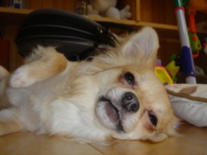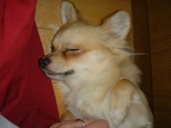 しょっぱなからガウガウなクッチで失礼します(´△`)☆おやつ中のクッチです☆おやつを取られるのでは!?と思ってガウガウ牙むき出しのクッチです!!おやつ中のクッチは危険です(>_<)どうしてママにそんな顔するの??ママは悲しいよぉ~。見知らぬ人にもこんな感じプラス吠えるクッチ・・・。そんなクッチもトリマーさんの前ではとってもいい子なんですよ(^▽^)クッチはシャンプーへ行ってきました!!フワフワのいい~香りになってきました(^^) そしてとっても疲れたみたい・・・ (・_・)オネムなく~たんでしゅ。 Zzzz・・・☆ トリマーさんに今日もクッチちゃんおりこうさんでしたよ。終わったあとは目を細めてうっとりしていて気持ちよさそうでとても可愛かったですよ。ってコメントいただきました☆その言葉にオレンジ満月は救われましたぁ~♪ オネムなクッチ。名前を呼んでもこんな状態でした(*´∀`*)ノ