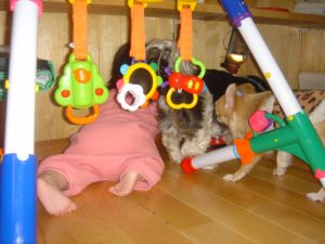 今日から3月ですね(^▽^)ノ今日も雨☆全国的に雨ですよねぇ~☆クッチにすれば面白くないね( ̄д ̄)=3退屈なクッチがメイにいたずら。ニヤッ( ̄▽ ̄) 『メイが寝てるぅ~☆』 『ペロペロッしちゃえぇ~☆』 『ボク、知らないよっ』今日はお義母さんがお出掛け中にお義母さんのお友達が来ました。ピンポーンなったらクッチはメチャメチャ吠えるの(>_<)部屋の戸を開けるときクッチが出ないようにしてるんだけど。注意してたんだけど、メイを抱っこしてたからちょっとしたすきに戸開けたとたんメッチャ☆ダッシュのクッチ☆玄関へ一目散にダッーシュ☆ワンワンッワンワンッ本当に困ったクッチさん(>_<)今日はその人に痩せたんじゃない??と言われました(^▽^)今日は薄着してたのもあるんですけどね☆しか~し今朝久しぶりに体重測ったら増えてたんだよね・・・。しかも最近鏡見るたびあごライン気になるんだよね。痩せたって言われて嬉しいけど嬉しくない( ̄□ ̄)最近はバレー始めて運動してるんだけど、それ以上に食べてるしね・・・。しかも寝る前とかついついアイスとかラーメンとか旦那につられて食べてしまうの(>_<)ってか最近食べてもスグお腹空いちゃう。旦那は太らない体質。うらやましい☆しかも今週は練習してる小学校の体育館は卒業式準備とかで使えないし雨でクッチの散歩も行かないしグータラ主婦なのら(´□`)ダイエットって続かないし食べるの制限とか嫌いだし(>_<)運動して痩せれたらな☆しかし最近☆食欲ありまくりなうちには今の運動量じゃとうてい痩せれないのですがね。そうそう来週の日曜に町内の方からソフトバレーのオファーがきたのら。運動~運動~♪