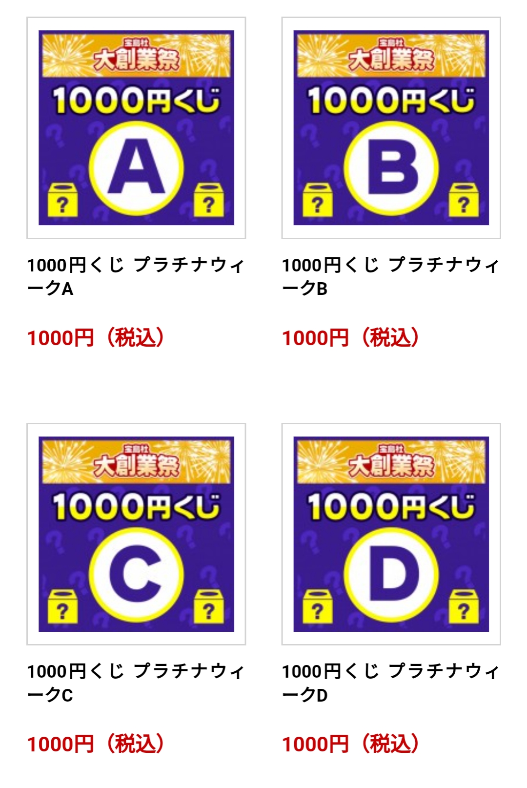 本当は最終週が始まったら1000円くじを全種買おうと思ってたのにすっかり忘れてて(泣)、今朝見たらすでにA・Cが売り切れてたので、B・Dを買いました。