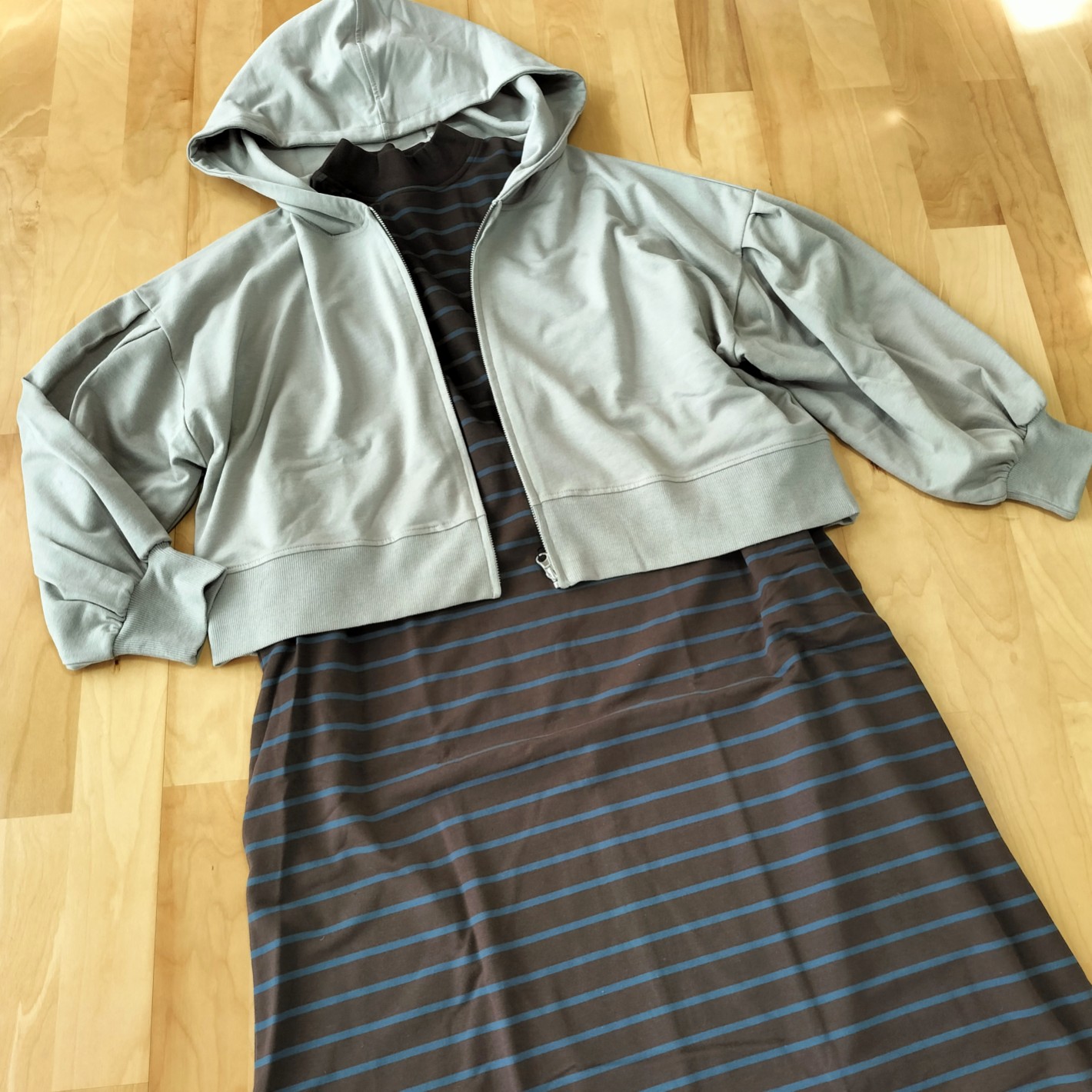 ややショート丈のパーカーが、マキシワンピと相性バツグン