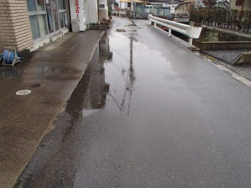 今日は午前中曇りの予報でしたが会社に着いたら雨が降り始めそのまま一日昨日よりは気温が上がりましたが5℃この暖かさなら雨ですね助かります こんなお天気の日は現場確認見事な水たまりですこれなら電話が掛かってきますね雨の中オートレベル高さも測ってきましたが・・・水たまり・・・解消できるかな悩む~ 今夜も夜間作業の予定でしたが中止です夜も降るって言うからね