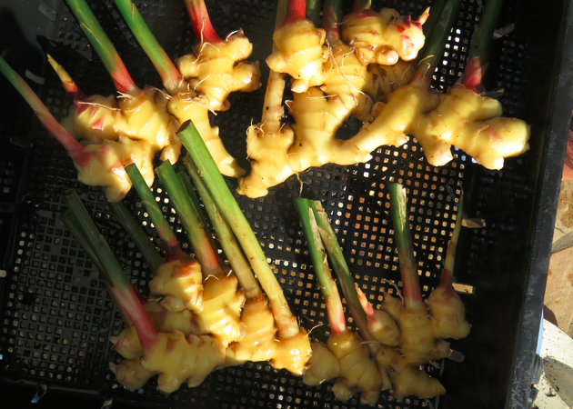 花壇兼畑に植えたショウガの4倍ぐらいできています。