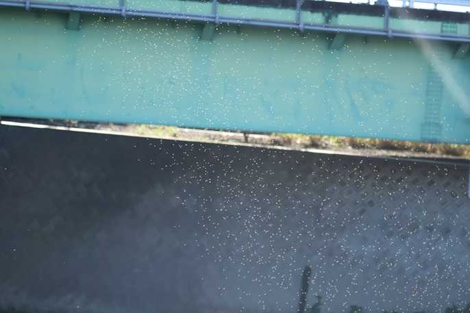 遊水地の隣に巴川が流れています。 この日は 虫がすごい・・固まって 飛んでいるので 撮りました。