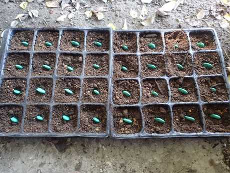 おはようございます。神奈川県”農業サポーター卒業2年生”による実習レポートです!☆~葉山農園風景~☆<第2地区>(長ネギまき地 × 秋冬野菜育苗地(ブロッコリー、キャベツ、芽キャベツ)(秋冬野菜育苗地(ハクサイ、カリフラワー) × タマネギ種まき地)(ぼろぼろナス苗お片付け地 × 第1弾白ナス苗お片付け地)(第2弾ピーマン苗植え付け地 × 第3弾長ナス苗植え付け地)(第1弾カラーピーマン苗お片付け地 × 第1弾ズッキーニ苗お片付け地)(こぼれ種から発芽した青シソ苗お片付け地)☆~本日の作業風景~☆この日は、10月17日(金)最高気温24.5℃、最低気温18.0℃。(*10月15日~16日、雨)前回は、<第4地区>カリフラワー苗植え付け&カブ間引き&ナス収穫などでしたが、今回は~?<第3弾ナスを収穫しよう~片付けよう~>長ナスの種まきをスタートしたのは、2月初旬頃長ナスの発芽を確認したのは、3月中旬頃長ナスが苗らしく成長してきたのを確認したのは、4月中旬頃第1弾ナス苗を<第4地区>に植え付けたのは~4月初旬頃第2弾ナス苗を<第1地区>に植え付けたのは~4月中旬頃第3弾長ナス苗を<第2地区>に植え付けたのは~5月初旬頃第4弾長ナス苗を<第3地区>に植え付けたのは~5月中旬頃第5弾ぼろぼろな長ナス苗を<第2地区>に植え付けたのは~6月中旬頃第1弾ナスの支柱立て&1番果を確認したのは~5月中頃頃第1弾ナスの1番果の収穫がスタートしたのは、6月初旬頃暑さが厳しくなってきたので・・第3弾ナスを収穫しながら~「更新剪定」を始めたのは~8月上旬頃今回も・・収穫をしちゃいましょう。まだまだ花が咲いているナスですが、今回は、コチラをお片付けしちゃいましょう~。⇒<第2弾ピーマンを収穫しよう~片付けよう~>ピーマンの種まきを開始したのは~まだ寒い2月上旬頃ピーマンの発芽を確認したのは~3月下旬頃第1弾ピーマン苗(ニューエース)を<第4地区>に植え付けたのは~4月中旬頃第2弾ピーマン苗を<第2地区>に植え付けたのは~5月初旬頃第3弾ピーマン苗を<第4地区>に植え付けたのは~5月初旬頃第4弾ピーマン苗を<第1地区>に植え付けたのは~5月上旬頃第1弾ピーマンの収穫がスタートしたのは~5月中旬頃第3弾京波ピーマンの収穫がスタートしたのは、7月初旬頃今回はコチラを収穫をしてみましょう~。収穫後は・・こちらも~お片付けしちゃいましょう。⇒<ソラマメの種まきをしよう~><種まきの方法(種の向き)>ソラマメの種まきは、「お歯黒」と呼ばれる黒い筋を下にしてまくのがコツ♪この部分から根と芽が出て伸びてきます。向きを間違えてしまうと~芽が出ない場合があるので注意が必要です。<ステップ1>お歯黒の向きを確認。<ステップ2>お歯黒の部分を斜め下に向けて土に挿し込みます。<ステップ3>種の先端が少し見えるぐらいまで押し込む<ステップ4>種まき後は鳥被害に注意しネットなどで覆う*種まきは直まきでもOKですが、鳥などの被害から守るためにはポリポットなどで育てるのがおススメ。無事に発芽してくれますよう~に☆☆~本日の収穫野菜~☆やっと<第2地区>のナスやピーマンをお片付けできました。早く片付けて秋冬野菜の準備をしたい気持ちと、まだまだ収穫できるので「もったいない!」気持ちとで複雑なお片付けとなりました。「頑張って、野菜つくれよっ」と応援していただける皆様、ランキングに参加しています。ポチっとクリックをおねがいします。いつも皆様の応援に感謝しております。毎日のブログ更新の励みとなっています人気ブログランキングにほんブログ村