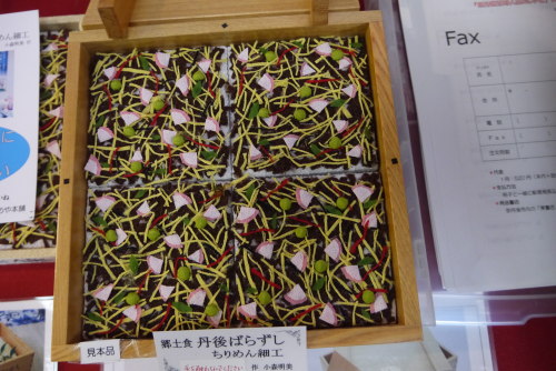 丹後のばらずしのちりめん細工ちりめん歴史館にて自動織機糸繰り機鬼の文化館で鬼の面鬼がわらお腹いっぱい食べて眠りについた。朝一番に「とり松」という散らし寿司を作っているお店に、予約を入れた寿司をとりにいく。この地方は冠婚葬祭には、散らし寿司を作ってこれをみんなで食べるということになっている。このお店のお寿司は本当においしい。朝受け取るには前日に予約が必要だが、一度お試しする価値はきっとあると思う。(前に行った親戚から、おみやげにもらってほんとにおいしいと思ったので、予定入れていた)翌朝は、丹後ちりめんの歴史館を見学に行く。経糸は普通の絹糸、横糸は3000回ぐらいの撚りをかけた絹糸で織ったもので、自然に凹凸がでてきたもの。しわになりにくく、着物以外ではブラウスなどに私は使っている。自動織機などが動いており、紋紙というものを使ってこれを機械に読ませることで、地紋ができていく。私の母の実家は泉大津市にあり、ここは昔は全国有数の織物産地であったので、紋紙を使って織るという方法は母からは聞いていたので、よく理屈はわかった。私は草木染めの赤系のロングスカートを買ってみたそのご大江山の鬼の文化交流館へと移動する。大江山といえば、茨木童子酒呑童子が有名だが、それ以前にも、崇神天皇の弟が退治したり、聖徳太子の弟も大江山で鬼退治をしている。鬼というのには色々あるが、この地の鬼は何ものであったろう。山賊、あるいは大和朝廷に敵対する豪族、山の民、金属の精錬技術をもった集団など色々考えられる。ここでは、鬼に関わる品物、面や鬼がわら、芸術作品などが展示してある。これで全ての予定を終了して、家へと向かう。