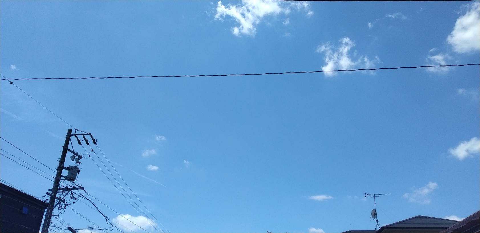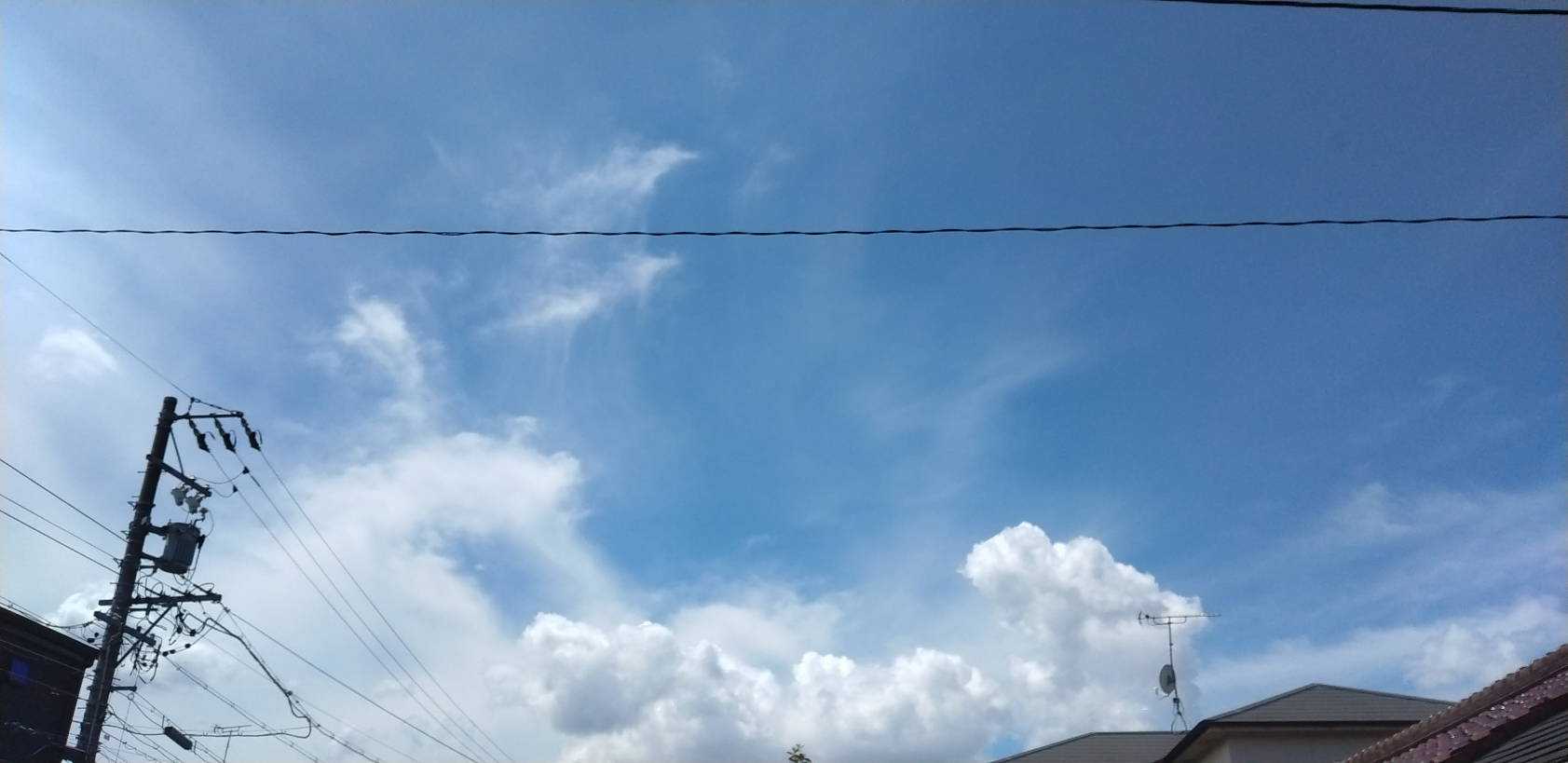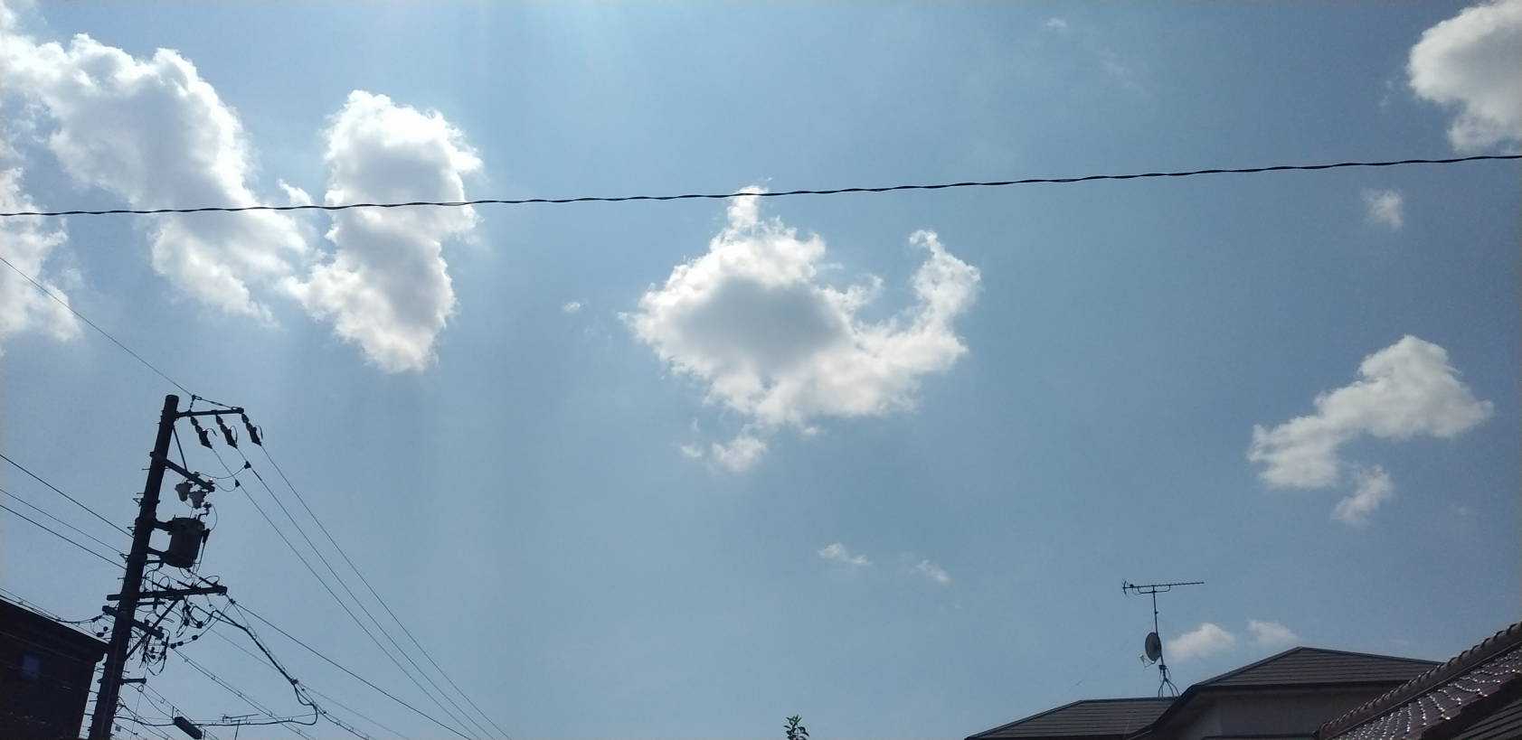 (最低気温28℃ 最高気温39℃)今日はお母さんが退院するので息子と一緒にお迎えに行ってきました。入院中、リハビリをしていたので入院前よりしっかりと歩けるようになってました。右腕は、少しは良くなりましたが相変わらず上がらないので定期的にリハビリを続けるようです。今晩は、みんなで退院祝いのお寿司を食べます。12時頃の空。 午後、短時間(1分ないくらい)パラパラっとお天気雨が降りました。ーーーーーーーーーーーーーーーーーーーーーーーーーーーーーーーー午前中、リフォーム屋さんに駐車スペースの散水栓を縦水栓に替えて貰いました。工事は終わったのですが、リフォーム屋さんが水道メーターのパイロットがゆっくりと回っていることに気づきました。(どこかで微量の漏水が起こっているようです。)水道局にお願いすると調査してくれると教えてくれたので、さっそく水道局に電話したら午後から見に来てくれました。家の中や表の蛇口付近の音を聞いて検査してくれましたが、漏水は検知できませんでした。今のところ水道使用量に大きな変化がないのでしばらくは様子見となりました。我家、築40年くらいなので漏水が起こっても不思議ではないそうです。もし漏水が確認出来たら水道管の引き直しになると思われます。新設した縦水栓。新しいコンクリートが打ってあるあたりに散水栓がありました。ーーーーーーーーーーーーーーーーーーーーーーーーーーーーーーーーソラニャン、退院してきたお母さんと顔を合わせたらビックリして逃げていきました.....その後、1,2時間、押し入れの中で寝たらやっと思い出したようでチュールを貰おうと甘えてました。 可愛がってもらってたのに、1か月半も顔を見ないと忘れてしまうんですね。 押し入れの中でお休み中のソラニャン。ーーーーーーーーーーーーーーーーーーーーーーーーーーーーーーーーー明日は、お姉ちゃん達がやってきます。お盆休み中のブログは不定期になるかもしれません。以 上