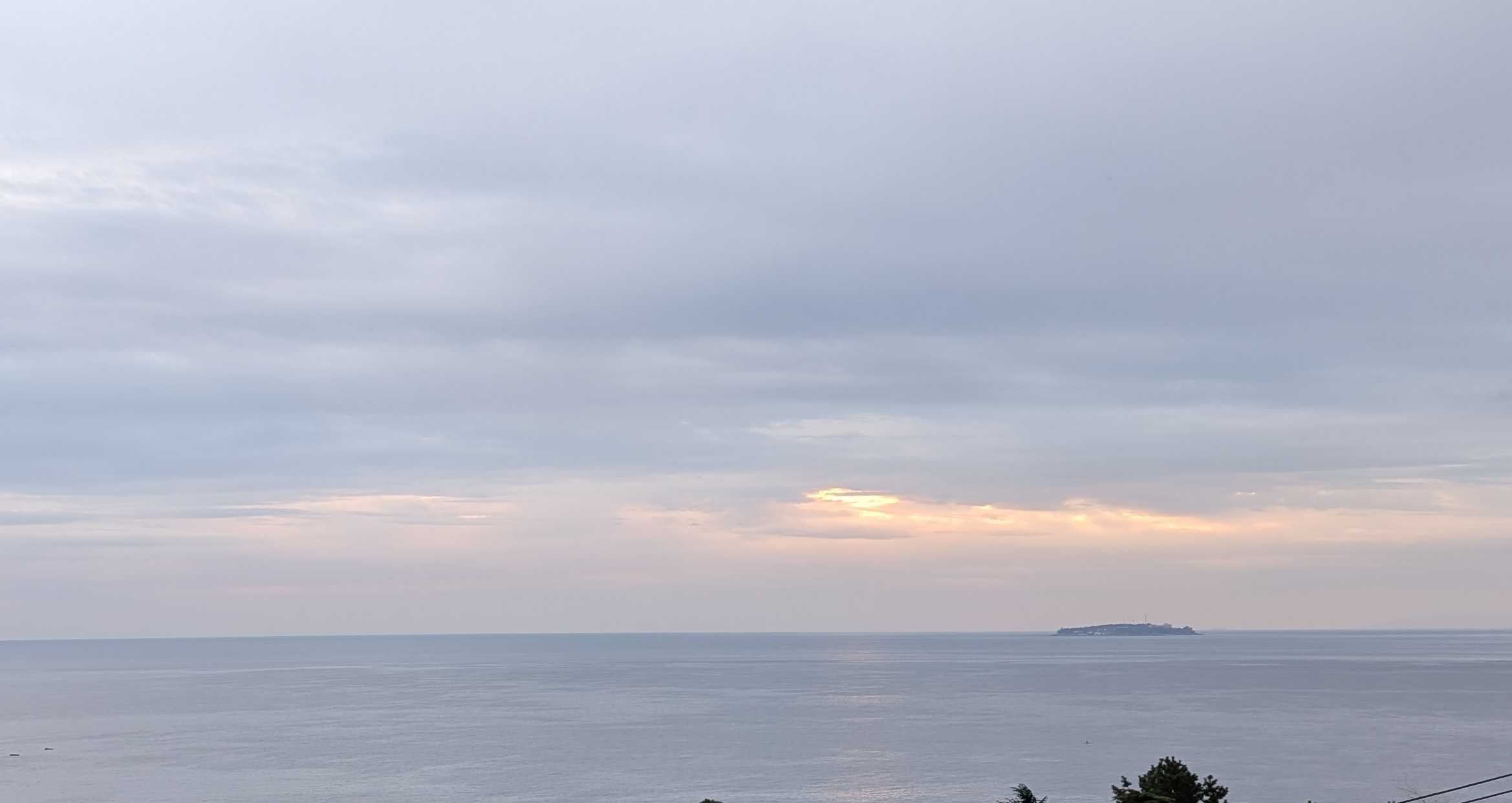 可愛らしいお菓子で可愛らしいお味でした♪見た目より全体的に柔らかくて、あたしは一袋ペロリと食べてしまいました。でも何故?名古屋のお土産店で売っていたのでしょう?早朝の熱海の海と空です。今日は1日曇りのようです。日差しがあると暖かいというより、気温が急に上がるので寒暖差で疲れます。ネットで調べると水分補給が大事だと書かれていました。インフルエンザも流行しているので、水分も栄養も睡眠もしっかりとりたいです。