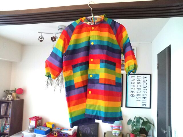 先日の楽天マラソンで購入した息子のレインコート。 カラフルなレインボーがとっても可愛いです♪そして目立つことー!! 背中には星マークの反射板つき♪ 専用の袋もちゃんと付いています。 昨日は雨だったので、早速大活躍。 レインコートの下にはリュックを背負っています。 サイズは96センチの息子に110を購入しました。若干大きめですが、問題ありません。長く活躍してくれそう! 長靴はこちらのライムの16センチ。 傘はジョージーズで購入したものです。 同じくレインボー! にほんブログ村