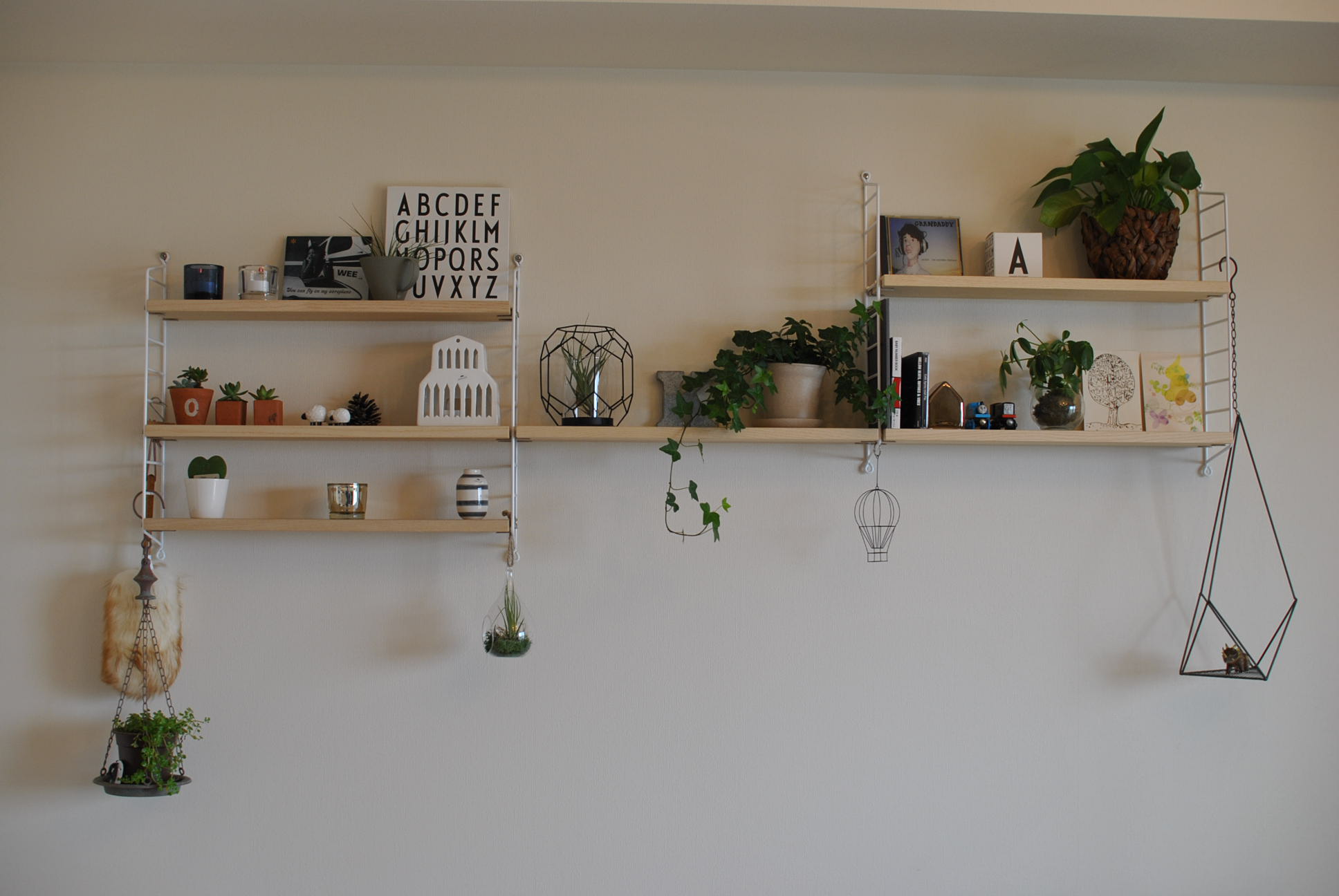 かなり、ゴチャゴチャしてますが、このゴチャゴチャ感が結構好きです。 全体的に、グリーンを増やしたり、モノを吊り下げたりして、楽しんでます。アイビーの葉っぱがいい感じ! ゴールドも取り入れて。 にほんブログ村