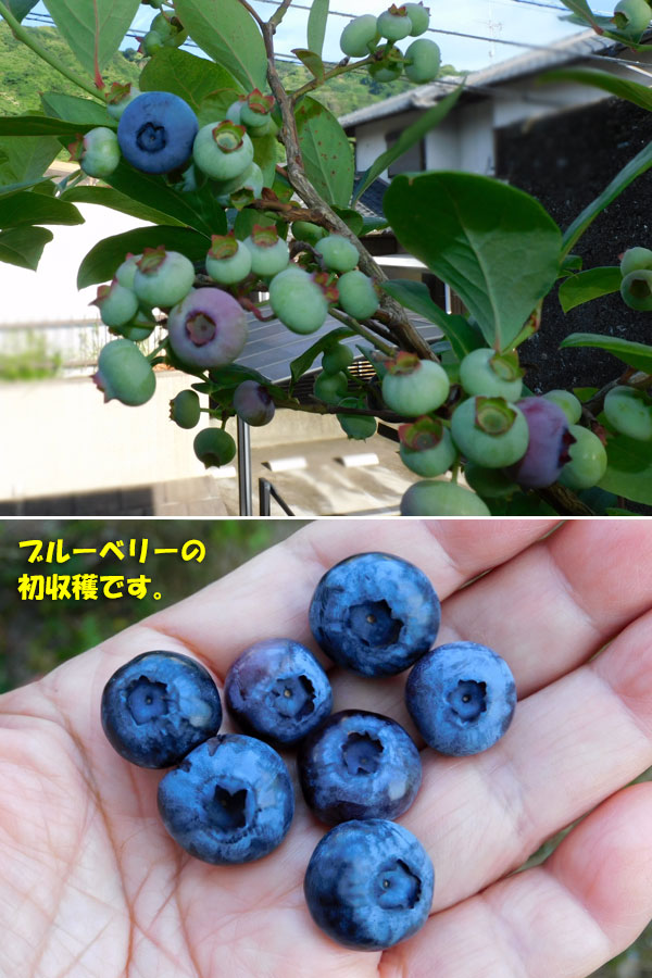 さっき、確認したら、九州北部地方は「梅雨入り」だそうですね。天気予報が雨続きだったので、その準備の作業をしました。雨の間、なかなか庭仕事ができないでしょうから、その間に伸びたらいやな草を、柄つき電動バリカンで、丁寧に刈り、刈り取った草を、ちゃんと袋詰めしましたよ。水やりしなくていいのは、助かります。庭の花たちは、雨がかかっても大丈夫そう。楽しみにしていた「墨田の花火」も、ようやく色が変わってきました。この、花の軸の色が大好きなんです。がく紫陽花のアリランも、だいぶ、それらしくなってきました。大き目で、くるんとなった装飾花の色が美しいんです。この赤いユリは、母が10年くらい前に植えたもの。花が咲いたら、「血の色みたいで、気持ちが悪いね。」なんて、言っていましたよ。(確かに!!)その赤いユリの写真を撮っていたのですがなんだか、ちょうと違和感が・・・なんか変、と思っていたら、花びらが8枚あったんですよ。正確には、内側の四枚が花びらで、外側の少し細い四枚が「がく」。こうしてみると、なんか、ユリ、という気がしませんね。別な花みたい。あ、今日も発見したのですが、二匹とも、すぐに、プ~~ンと逃げてしまいました。まあ、よそでラミー(苧麻)などのイラクサ科の植物を食べてくれればよいけど、アオイ科は、たいてい庭で育てている植物なので、困りますね。さて、明日からの大雨予報。このばんばん成長しているスーパーチュニア・ビスタミニは、あまり雨がかからないところに置いているので、大丈夫でしょう。他の、ロリポップやももいろハート、シャルウィダンスなども、雨がかからない場所に置いてあります。他のは、まあ、大丈夫でしょう。では、昨日の晩御飯ね。昨日は、なんか、手抜きをしてしまいました。ワンパンパスタです。まあ、みんな好きだから、良かったと思うけど、いつも、もう一つか二つ、箸休めのおかずをつけるのに、省略。ま、いっかー。で、朝ごはんは、これ。もっと酸っぱいか、と思っていましたが、十分に、そのまま生で食べられる味でした。甘みがあって良かった。明日から雨なので、放置するとせっかくのブルーベリーが落ちます。傘をさして、ビニール袋もって、採りにいかなくっちゃ!!