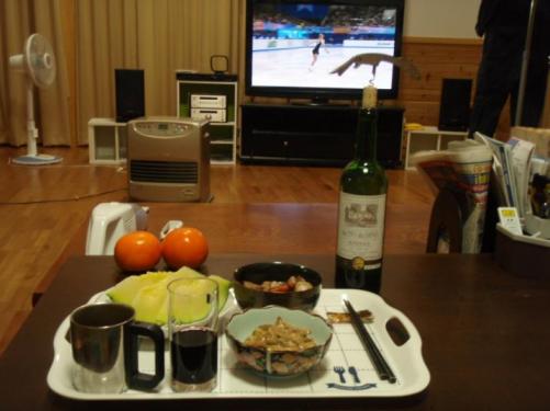 お膳の前に置いてあるのは毎年隣の農家より頂く、本日収穫の美味しい甘柿です。