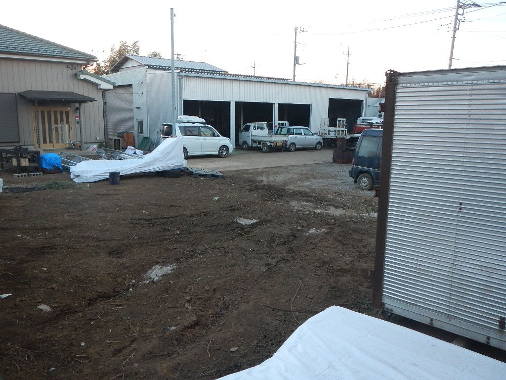 シャッターが取り外され無防備になった作業場ですが、まだ移転できない必要なものが残っているために、何もせずよりは盗難防止になるかと、シャッター代わりに車両で防御です。