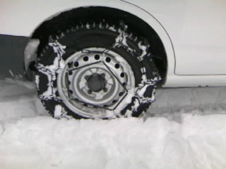 自分でタイヤチェーン履かせたのは、約10年ぶりです。久々だったけど、やり方は覚えているもんですね…。
