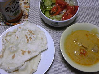 カレーは、初めてのナン作りで手一杯なので手抜きして、缶詰。