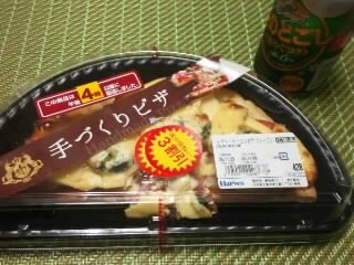 何はともあれ、1ヶ月お疲れ~というわけで、19:50~1コマだけだった今夜は、帰りに寄ったスーパーで値引きされていた「トマトとベーコンのピザ」で乾杯(^з^)-☆