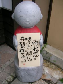 観光中に見た相田みつをさんの言葉です。「強い信念と明るい笑顔には奇跡の力がある」
