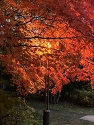 まずは公園の入り口近くに出店しているお店をチェックしてから、イチョウ並木へと進みました。ライトアップにはちょっと早い到着で自然光が注ぐ金色も満喫出来ました。人並もちょうど良い感じでハロウィーンの仮装をした若者達のいくつかのグループが写真を撮り合っている様子にも和みました。辺りも暗くなり始め街灯が灯ると幻想的な赤色となりました。どの木を見ても美しく見飽きるという事がないのが不思議です。有料ですが公園内の日本庭園でもライトアップがされていたようで、これは来年の楽しみに!四季のない国シンガポールから戻り四季の移り変わりを実感できることに感謝・感謝の昨日でした。