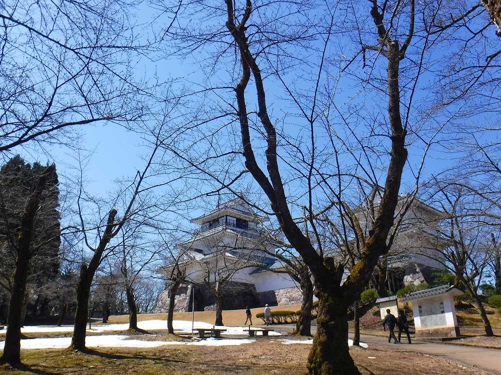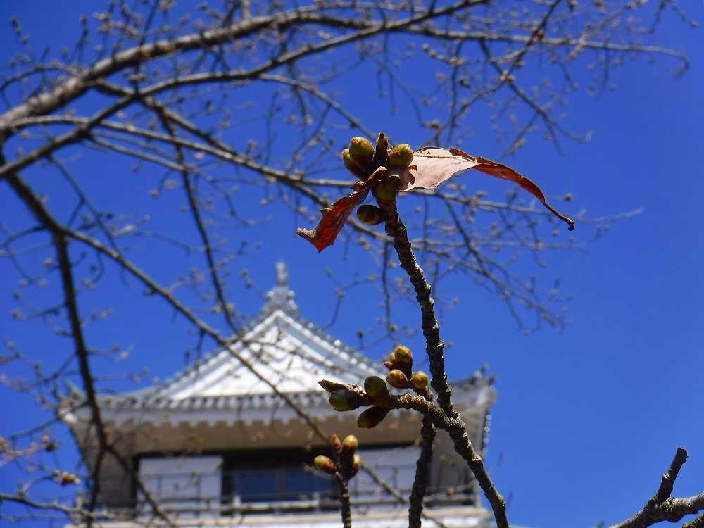 そう言えば、八重の字でも開き始めている株が有るんよなぁ……… 少なくとも昨日の彌彦櫻園では大島紅八重………とか言ったかな?それが咲いていた筈です。 で、昨日に引き続いて今日は………!THE 日本晴れ桜! ………一応狙った心算ではいたんですが、日本のお城と桜、青空の組み合わせって映えるもんですよねぇ~………。惜しむらくは自分の写真撮影の腕の無さ、です(涙 ともあれ、昨日の午後に引き続き今日は朝からぴーかん晴れでして。 寒い寒い言いながら早起きして撮影に向かった甲斐が有ったってもんでした<(`^´)> いや、朝は実際寒くてですね。窓を開けたら見事にガスってました。出発しようと車のエンジンを掛けたら濃霧注意報を報告されましたし。 見事な放射冷却でした。 後はこのまま目的地までスムーズに進めば、ワンチャン雲海ちっくな写真が期待出来るかも………!? って、思ったのが運転開始10分ほどで砕かれました_| ̄|○ とは言え、場所は違えど昨日同様に混み始める前に目的地には着けたので取り敢えず良しとします。 桜絨毯と残り桜。 全部が全部散り始めている、と言う訳も無いのが移り変わりの妙かなぁ、と思いますがそれはそれで興味深い部分でもあります。 お城型の郷土資料館のすぐ傍に、或る特徴を持った蕾の房がありまして、それがどうなっているのか確かめてみるのも目的にあったんですが。 先々週はまだ蕾だったその房。多分ですが火曜日頃には開き始めていたものと思われまして、その結果満開………!\(^_^)/ ちなみに先々週が蕾が枯葉を貫通している、と言う分かり易い特徴をしていました それが撮影から程無く開いたとするなら、やっぱり週前半の暖かいのが影響したんだろうな、と。 一応、出典不明の通説で「2月1日からの最高気温の積算が600℃を越えると開花する」なんて話があるらしいのですが、何となく裏付けられてしまう気がします。 ちゃんとビフォー・アフターの確認が撮れた珍しい事例かな、と自賛してます。 勿論、この桜以外にも歩き回っては写真を撮りまして 合計撮影枚数80枚以上(スマホとデジカメをそれぞれ別撮り)、都合2日間に亘る桜漬けの週末、でした!v( ̄Д ̄)v