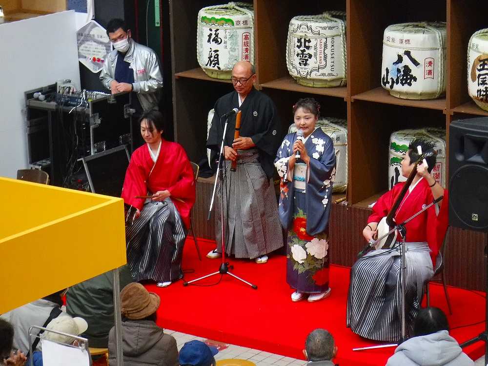 館内で民謡や甚句、いぶりがっこ販売なんかをされていたんですが本来は津軽三味線のグループなんですって。
