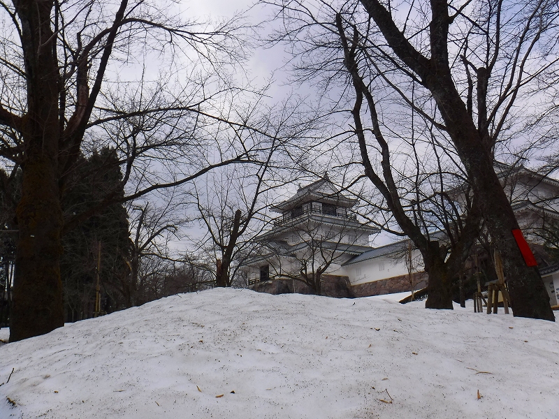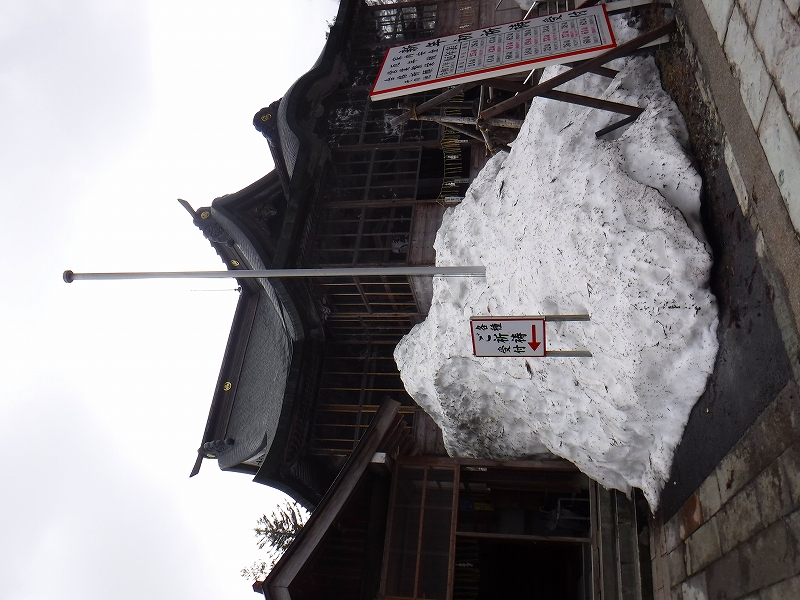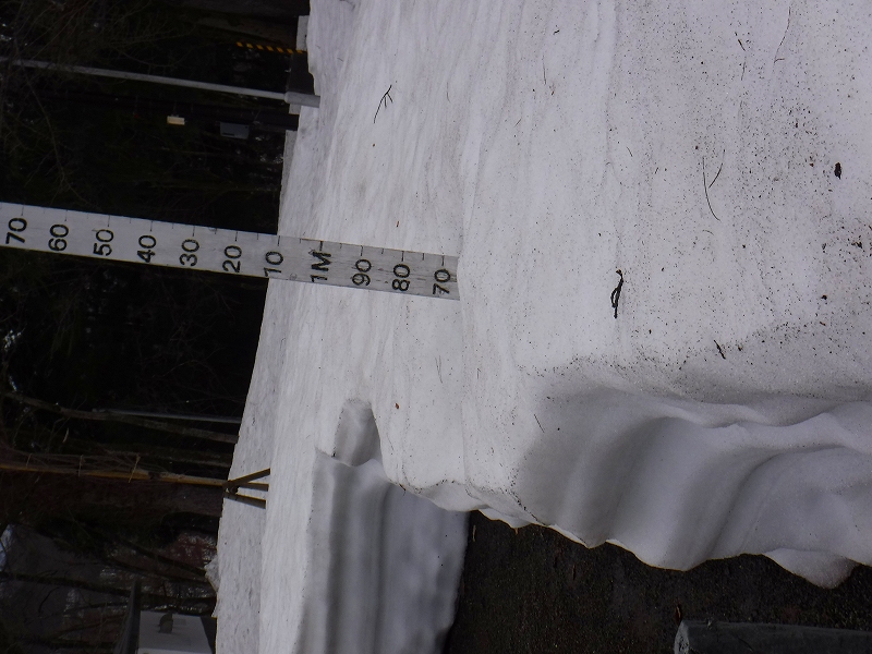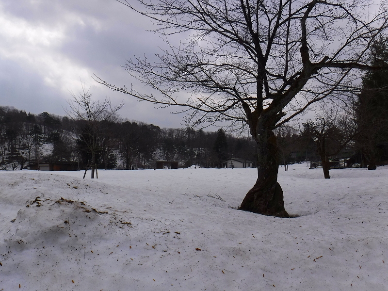 ぱっと見はまだまだ豪雪に見えますけど、歩くための通路は綺麗に確保されておりますのでご心配なく。ただ、御覧のように大雪が残っているところもあるので桜の樹には近付けていませんけど。