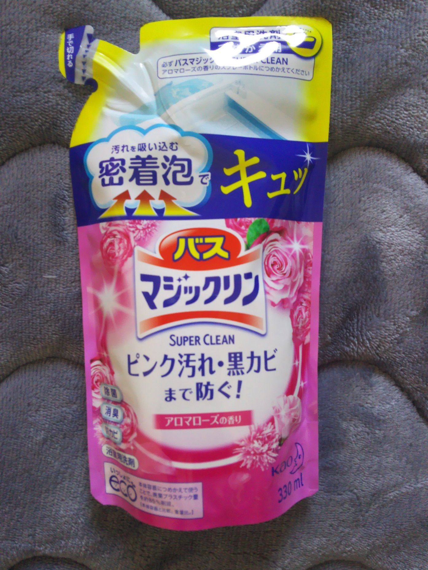 湯舟を綺麗にしてサッパリお風呂でリラックス。湯舟を洗うのは結構力がいりますが、綺麗なお風呂に入ってリラックスしてしっかり睡眠をとるのが一番の健康法です。バスマジックリン お風呂用洗剤 スーパークリーン アロマローズの香り 詰め替え(330ml)【バスマジックリン】
