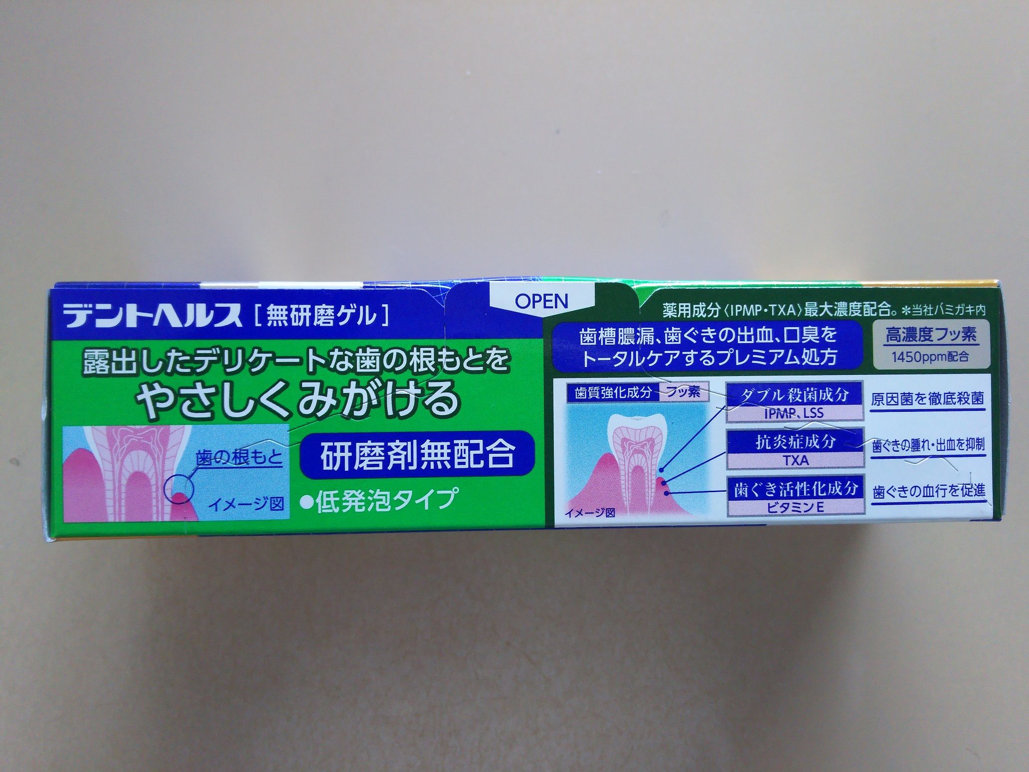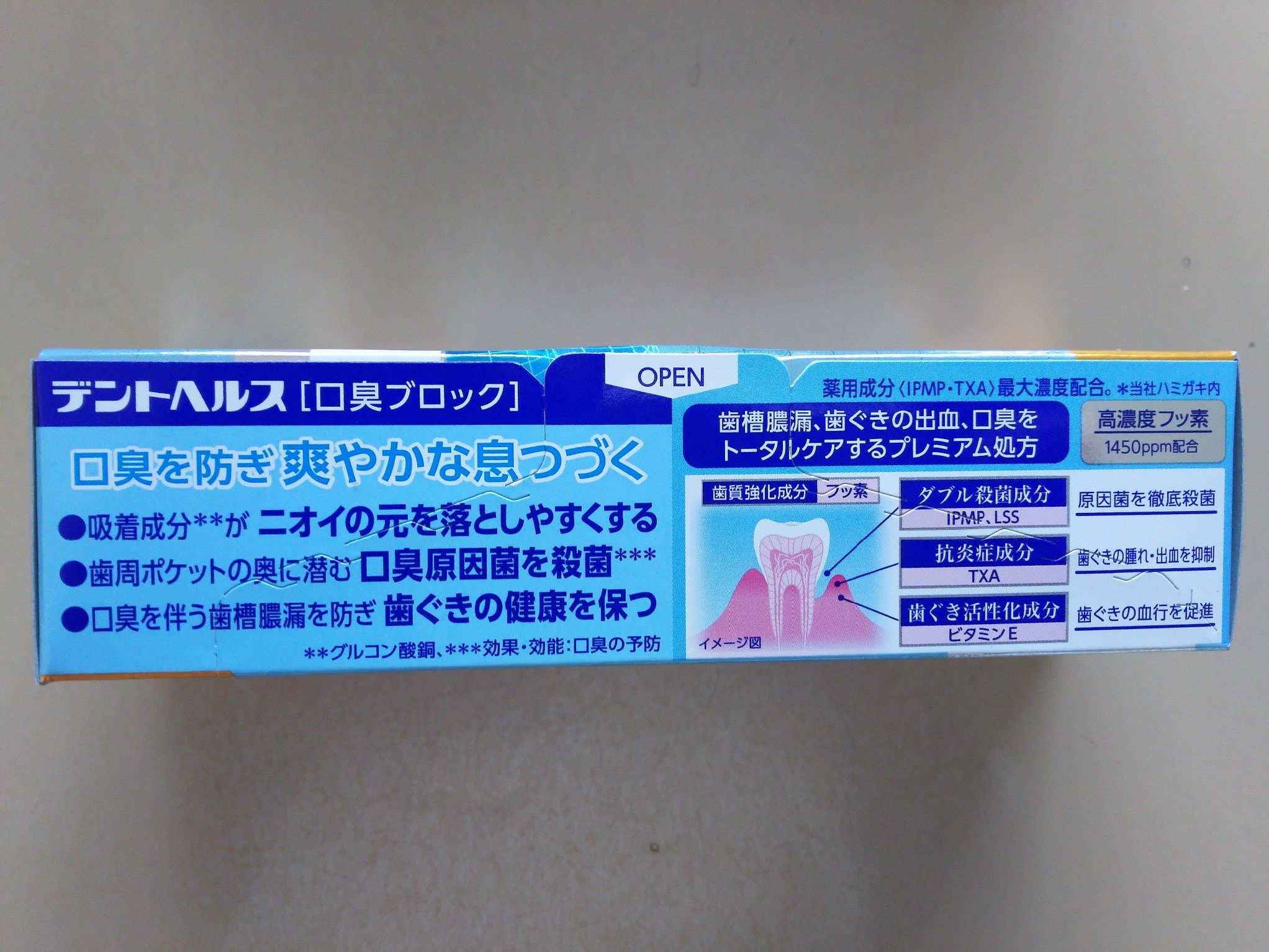 こちらは口臭ブロックタイプですので、朝や昼のお出かけ前に良いと思います。デントヘルスは歯や歯ぐきのケアはもちろん、様々なシーンでの使い方ができるバリエーションがあるので、いろいろと試しています。デントヘルス 薬用ハミガキ 口臭ブロック(85g)【デントヘルス】